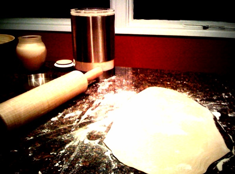 When spreading dough….lightly flour counter. Place dough on counter and using fingertips flatten and then stretch the dough on the outside of disc. Do this gently, trying to refrain from stretching from the middle so to not over-stretch the center, making it too thin.