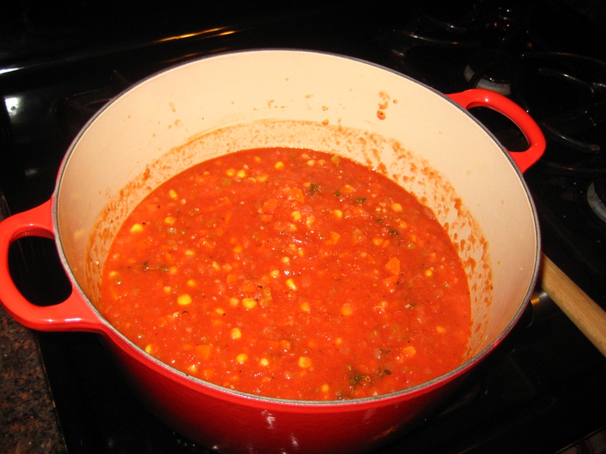 I just wanted to let you know that I made your recipe tonight and…..it was AWESOME! My husband and I inhaled it and loved every minute of it. I just wanted to mention that you didn’t state at what point to add the corn (unless i missed it) so I just stuck it in toward the end. Good work on decoding this Bobby Flay number and making it your own. I’m going to share this with all of my friends and family. 🙂