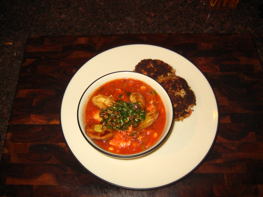 A recent episode of Throwdown had him challenging a Brooklyn native and his Manhattan Fish Chowder. Matt, being the lover of chowder that he is, fell in love with the recipe Bobby Flay created and insisted I make it for his birthday. He had never had a tomato based chowder before and wanted to compare it to the creamy favorite. The only problem was, the recipe isn’t posted anywhere online.