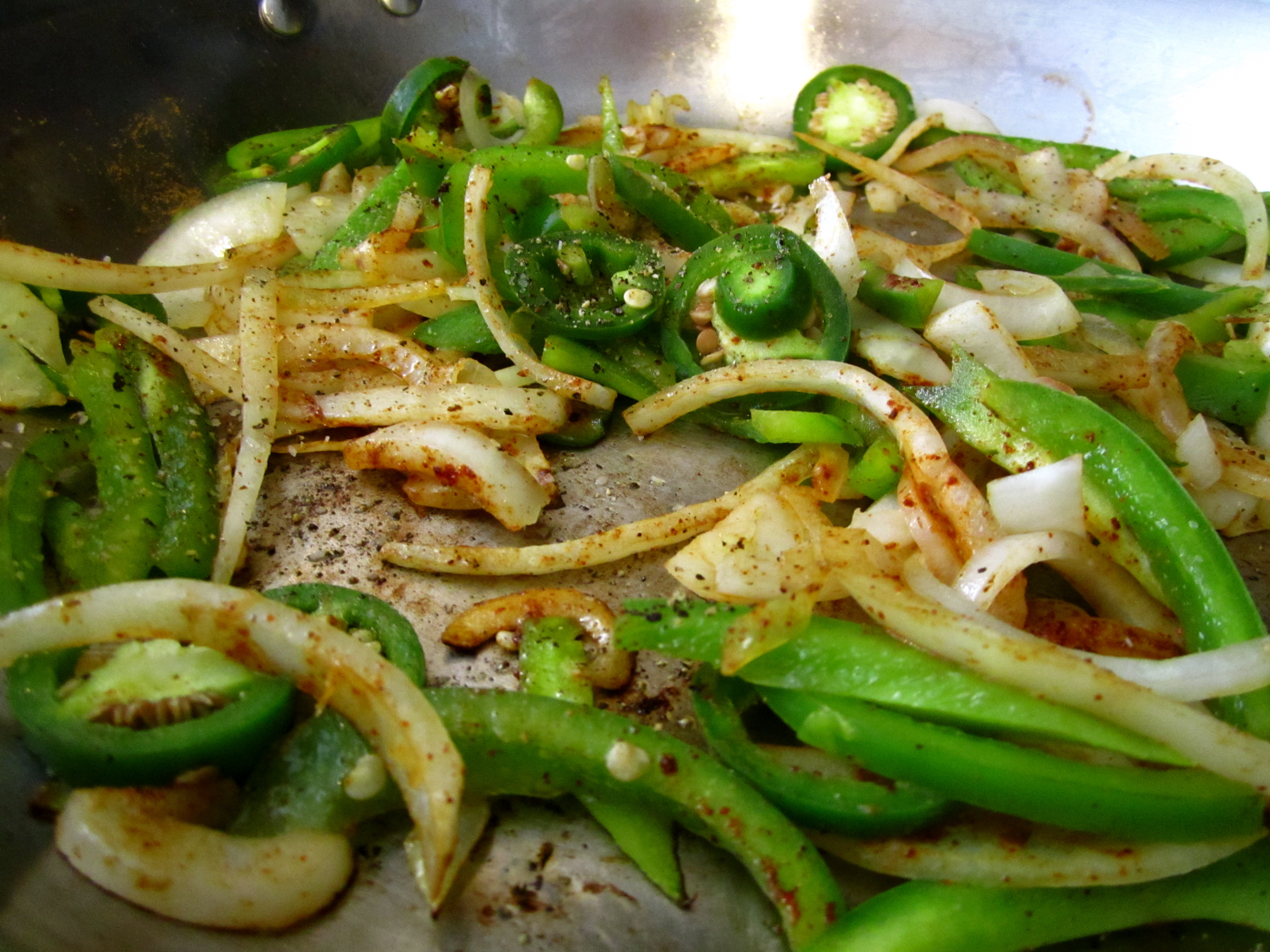 Heat 1 tbsp of oil in a large skillet over medium-high heat. Add the onion and next 5 ingredients, through the salt and pepper, and sauté until veggies are tender. Once the veggies are cool enough to handle, roughly chop into smaller pieces. Set aside.