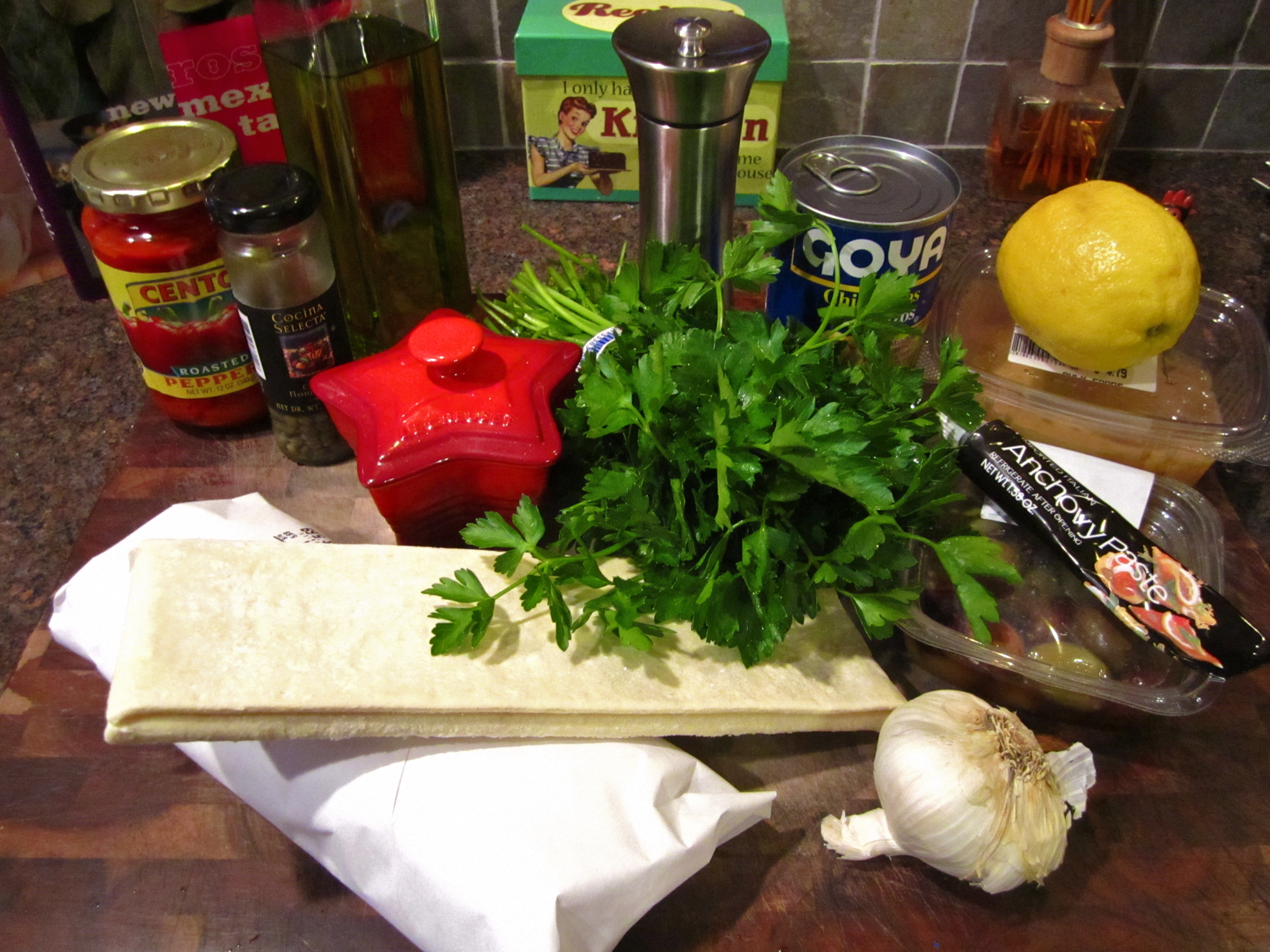 **To make this a really quick recipe, substitute with store-bought hummus and olive tapenade. If you make the entire recipe below, you will have extra hummus and tapenade for dipping (and it’s pretty tasty, too).