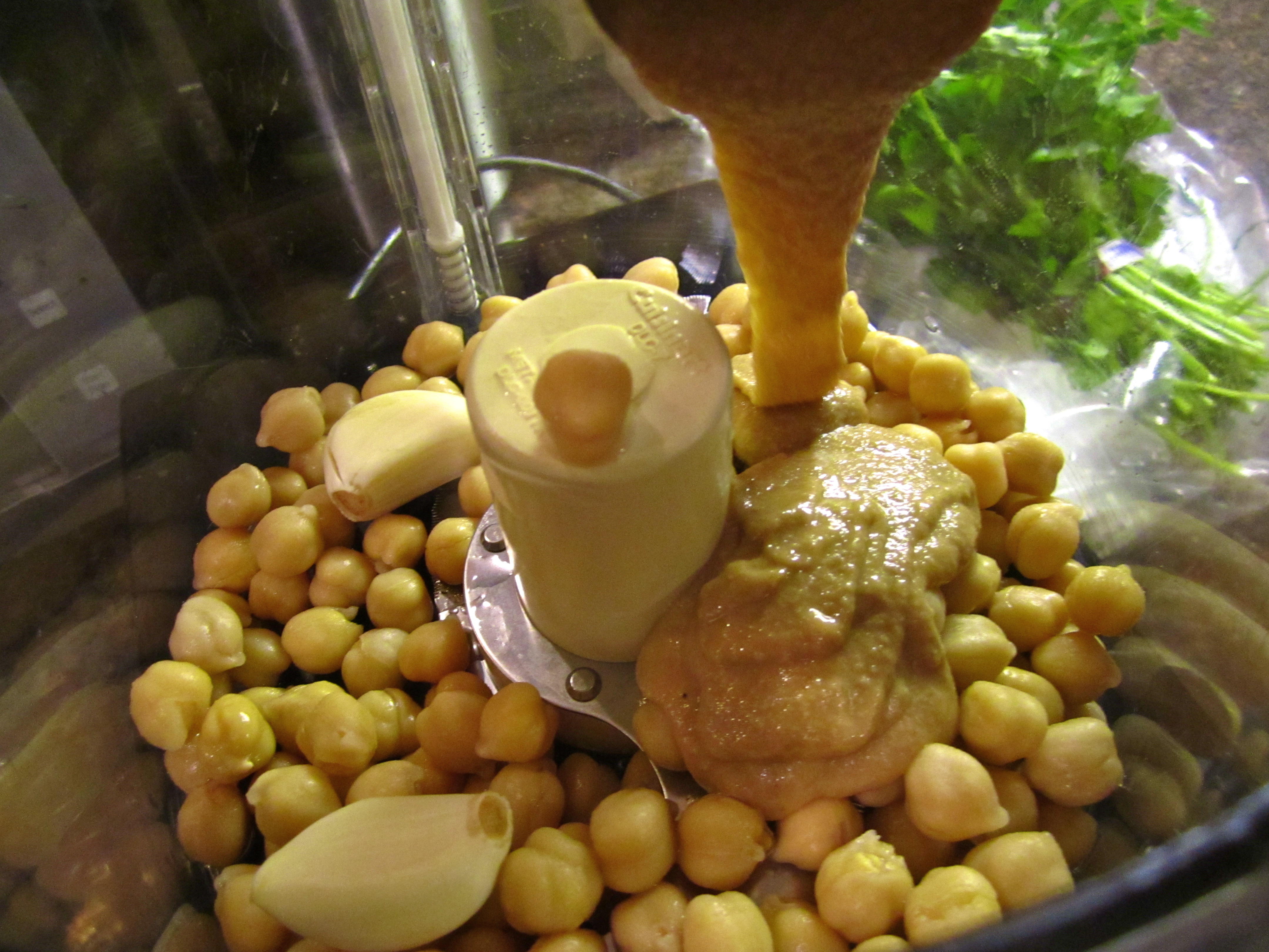 To make the hummus, place all of the ingredients in a food processor or blender.