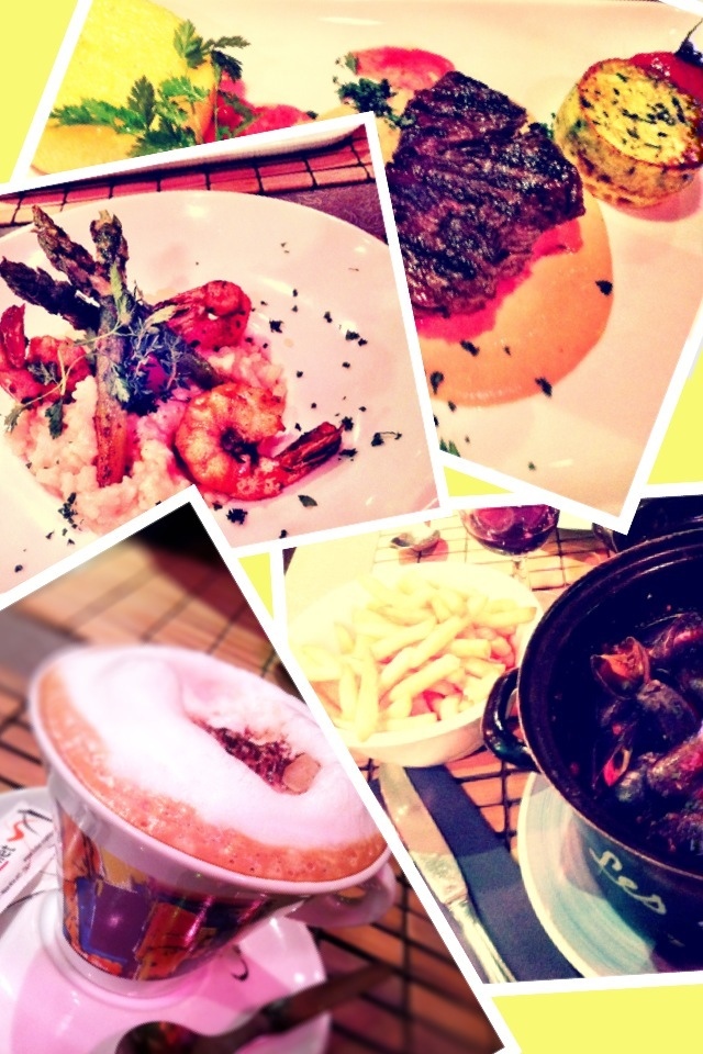 Dinner was fantastic as usual. The mussels were amazing and they’re not light on the portions either. The white wine sauce was full of flavor and the mussels as fresh as they come. The nicest surprise was the giant bowl of french fries that came with the mussels. I love how much the French eat Pommes Frites!! Matt’s steak was juicy and well seasoned…almost like something you’d get in Texas…almost. But I definitely have to say the winning dish was my risotto. The rice was thick and creamy with beautifully marinated shrimp and asparagus on top. Needless to say there was nothing left.