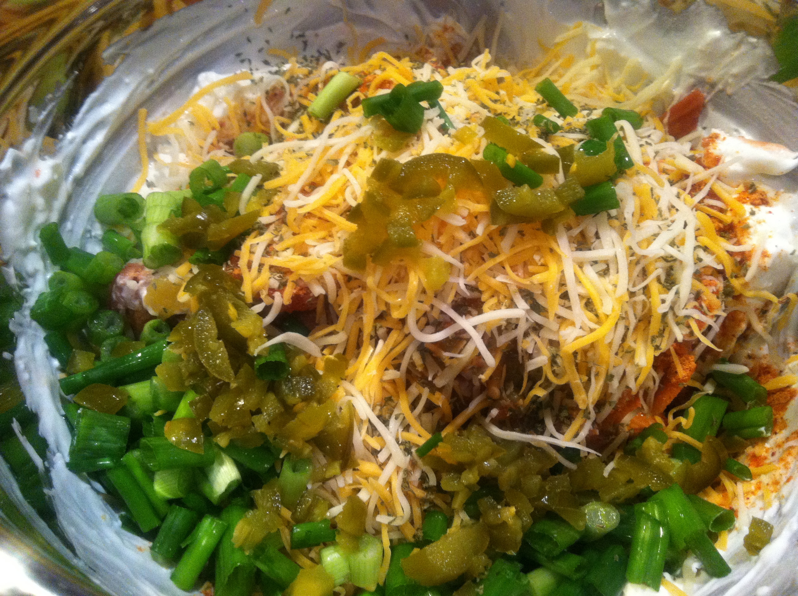 Add the remaining ingredients, minus one cup of cheese, and mix together.