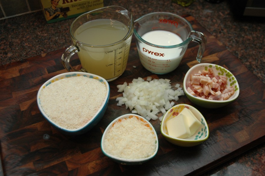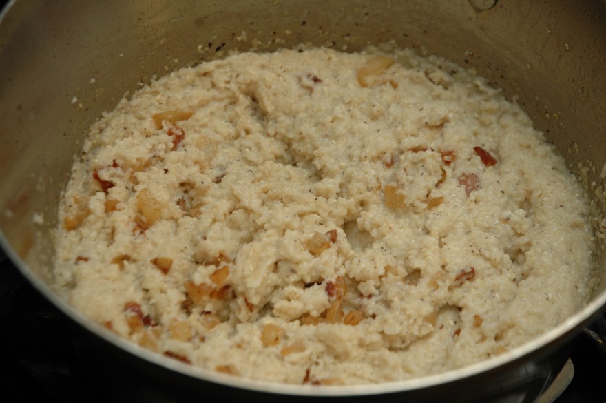 Remove from pan and set aside. Add the onions to the bacon grease and cook until tender.