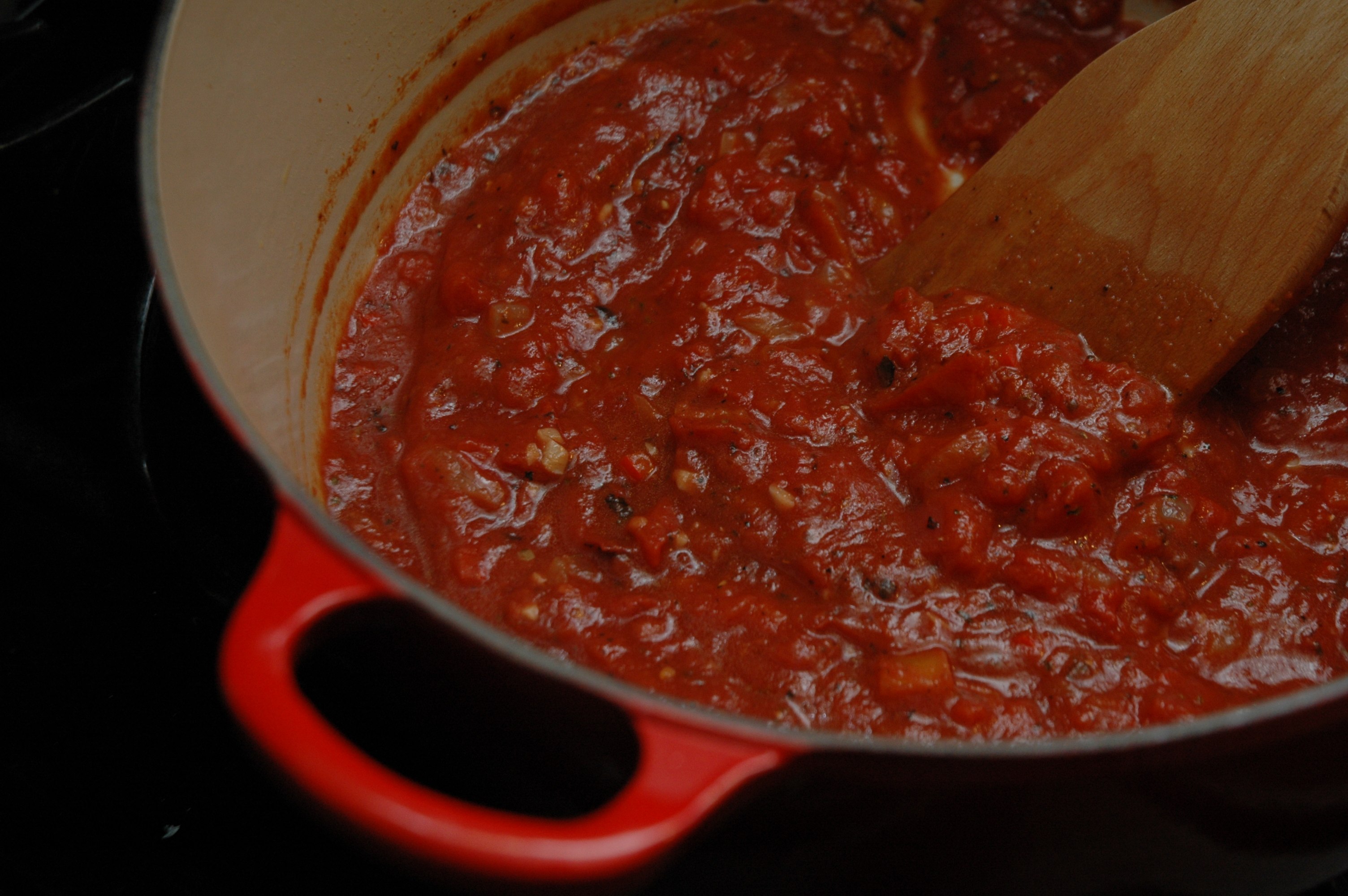Add the garlic and saute for 30 seconds. Add the tomatoes and seasoning and simmer for 15 minutes so the flavors can combine. Stir frequently. Taste and adjust the seasoning accordingly.
