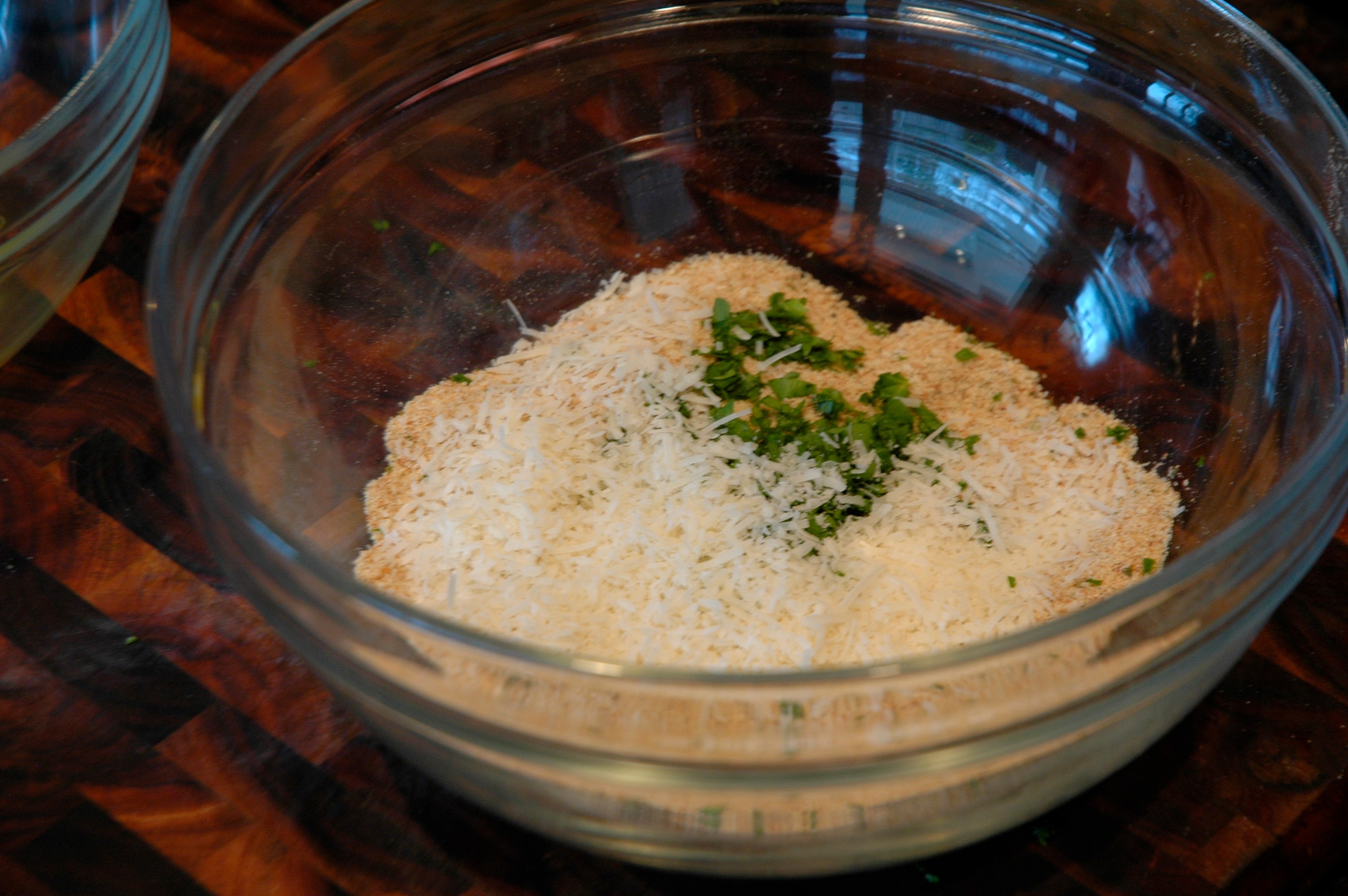 Combine the bread crumbs, parmesan cheese, and parsley in a large bowl and mix until well combined.
