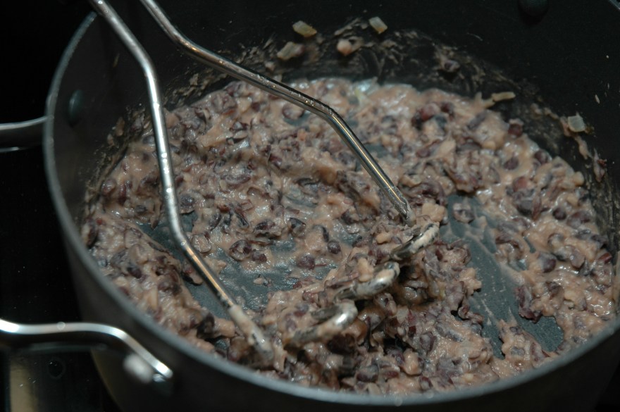 Add the cilantro, cumin, and lime juice. Mash beans using a potato masher or back of a wooden spatula until desired consistency. Taste and adjust seasoning accordingly.