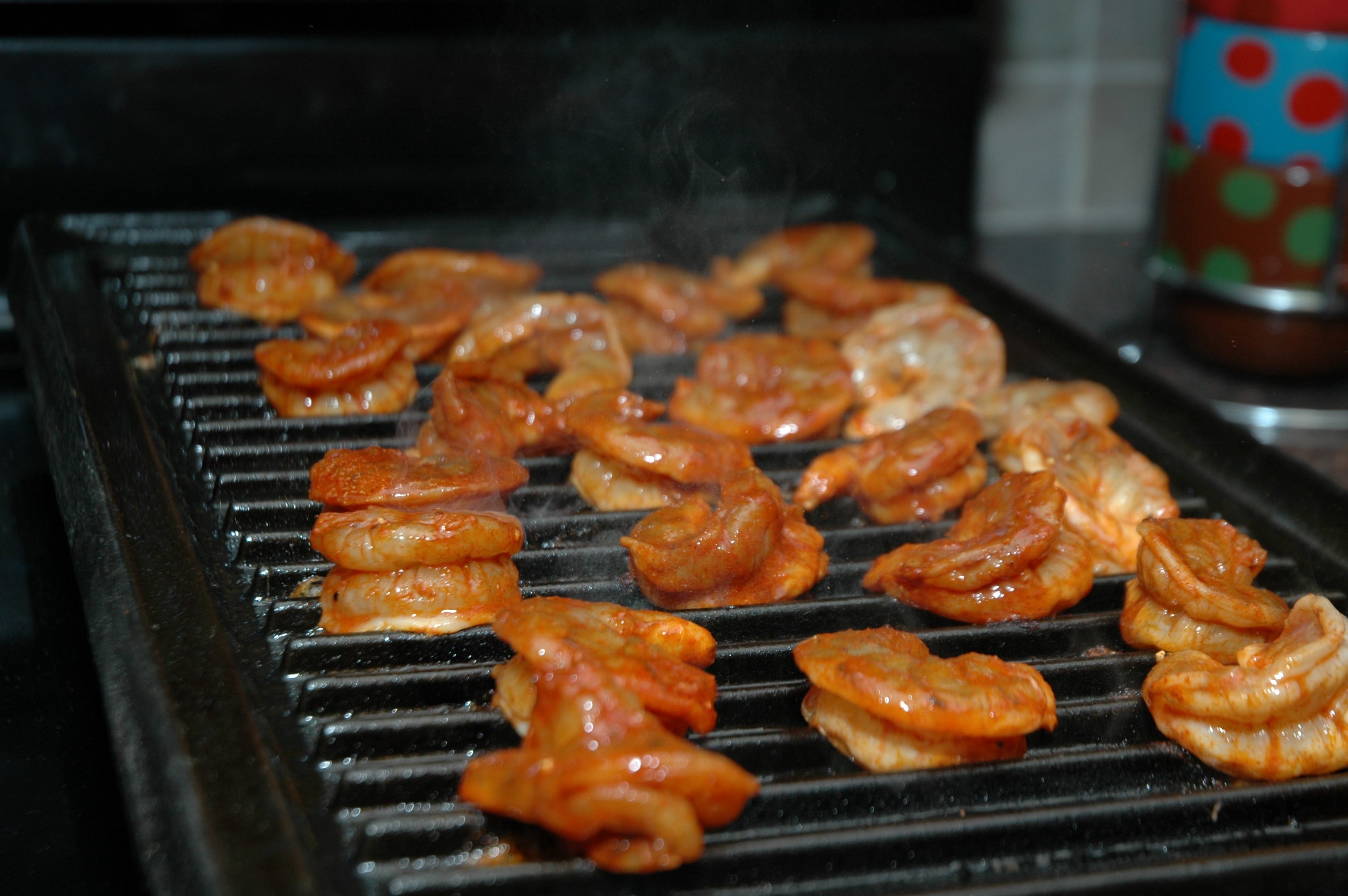 Heat an indoor grill pan or grill to medium high heat and grill the shrimp until cooked through.