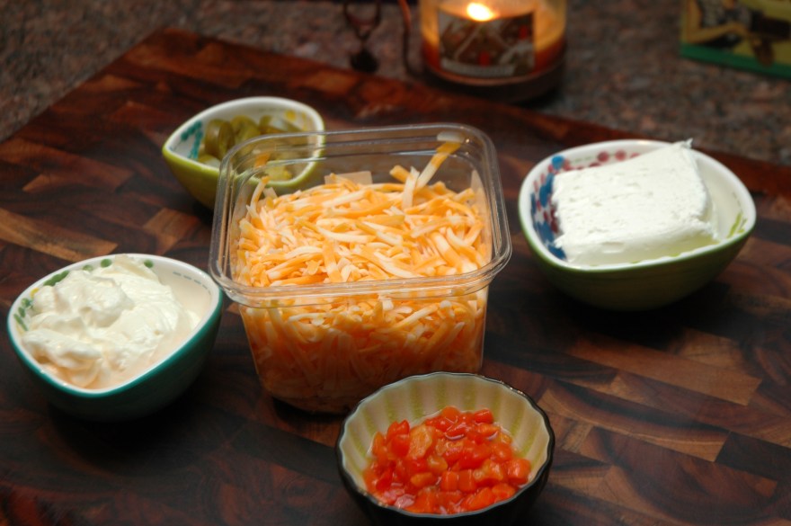 - 1/4 cup chopped jalapenos, reserve 1 tbsp whole jalapenos