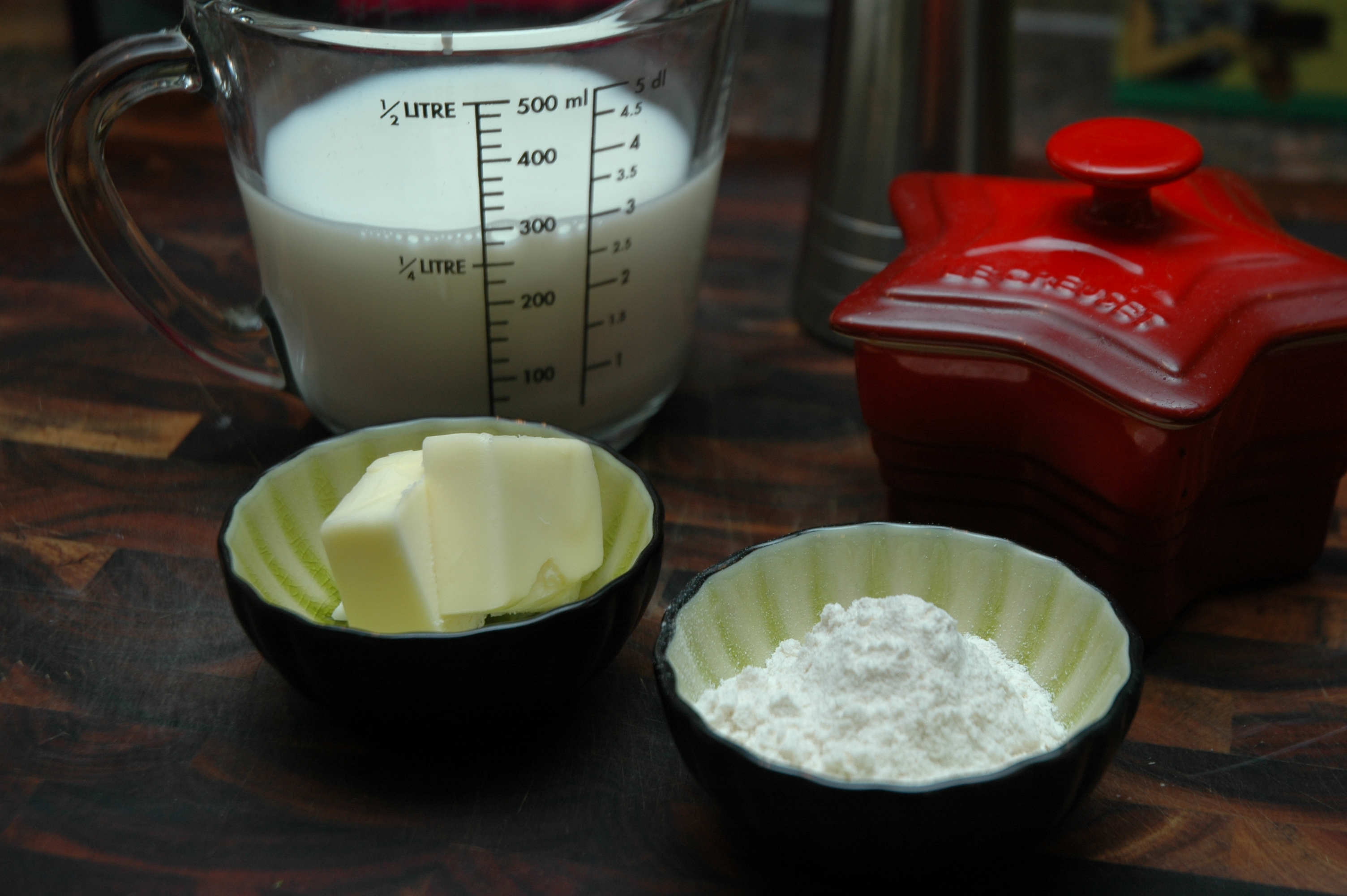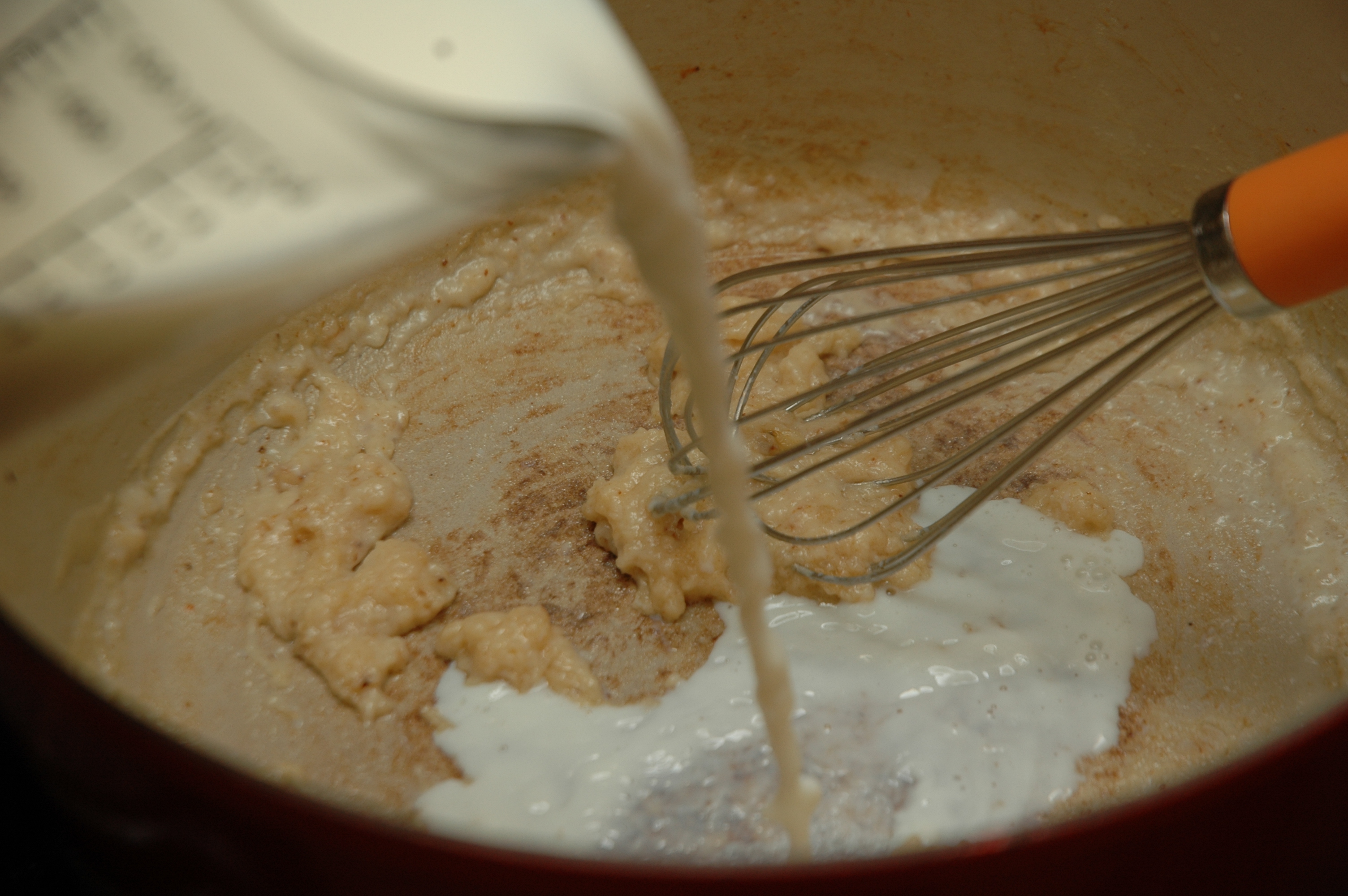 Once the butter and flour are combined slowly add the warm milk, stirring constantly so no lumps occur.