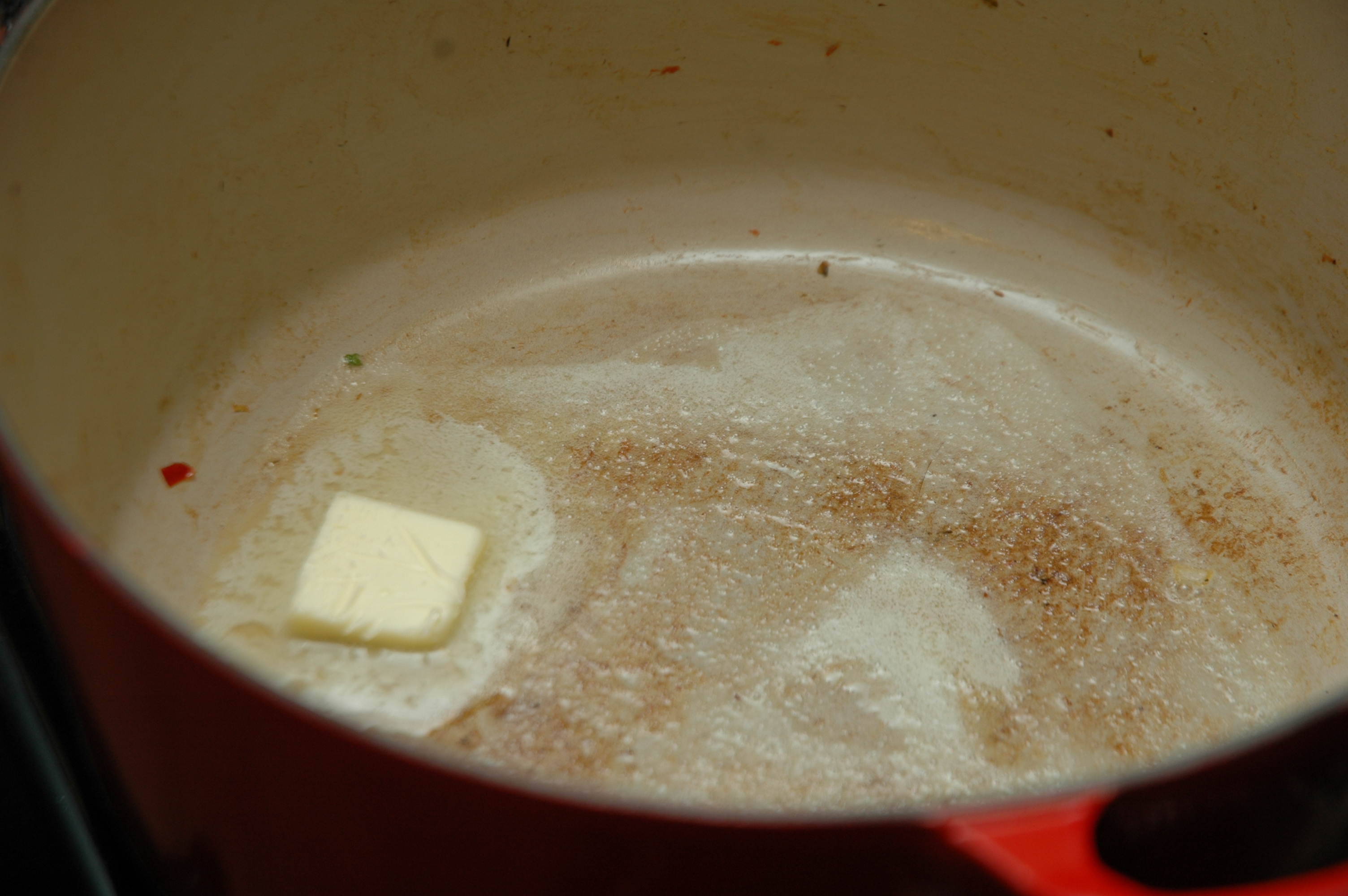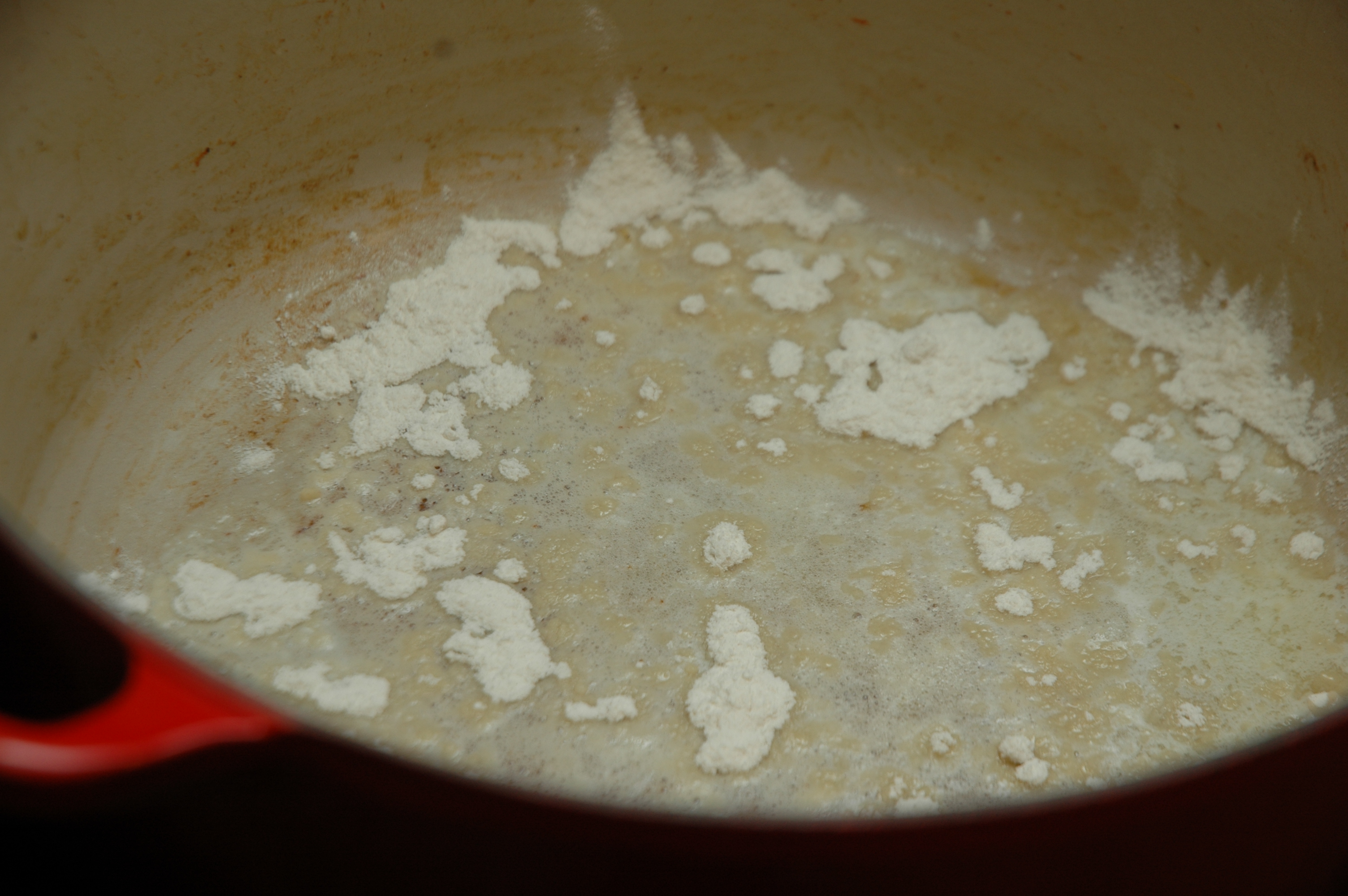 To make the béchamel reduce the heat to medium. In the same pan melt the butter.
