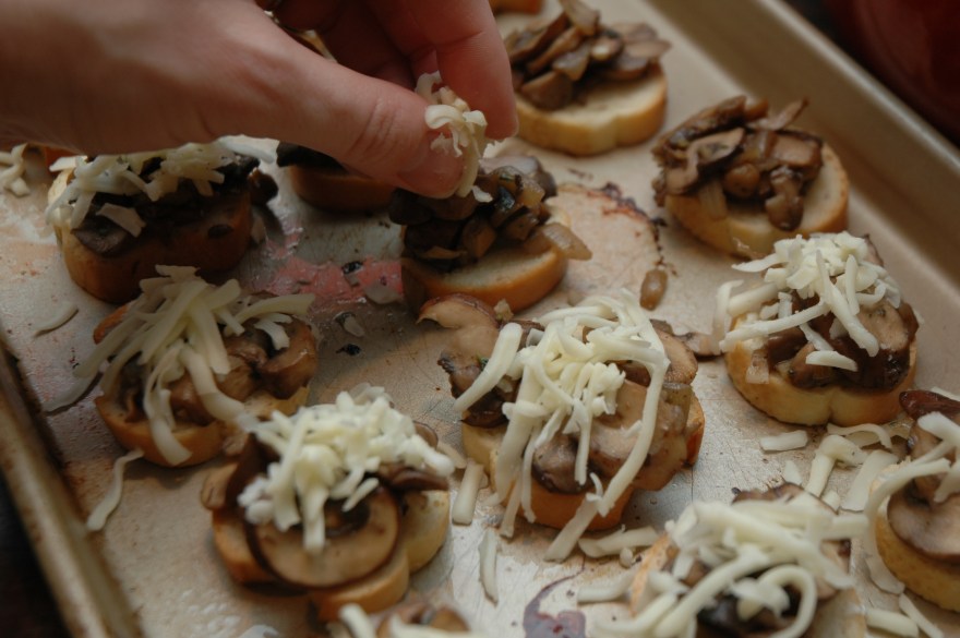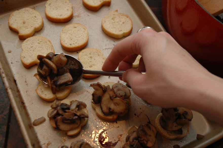 Top the bread with the mushroom mixture.