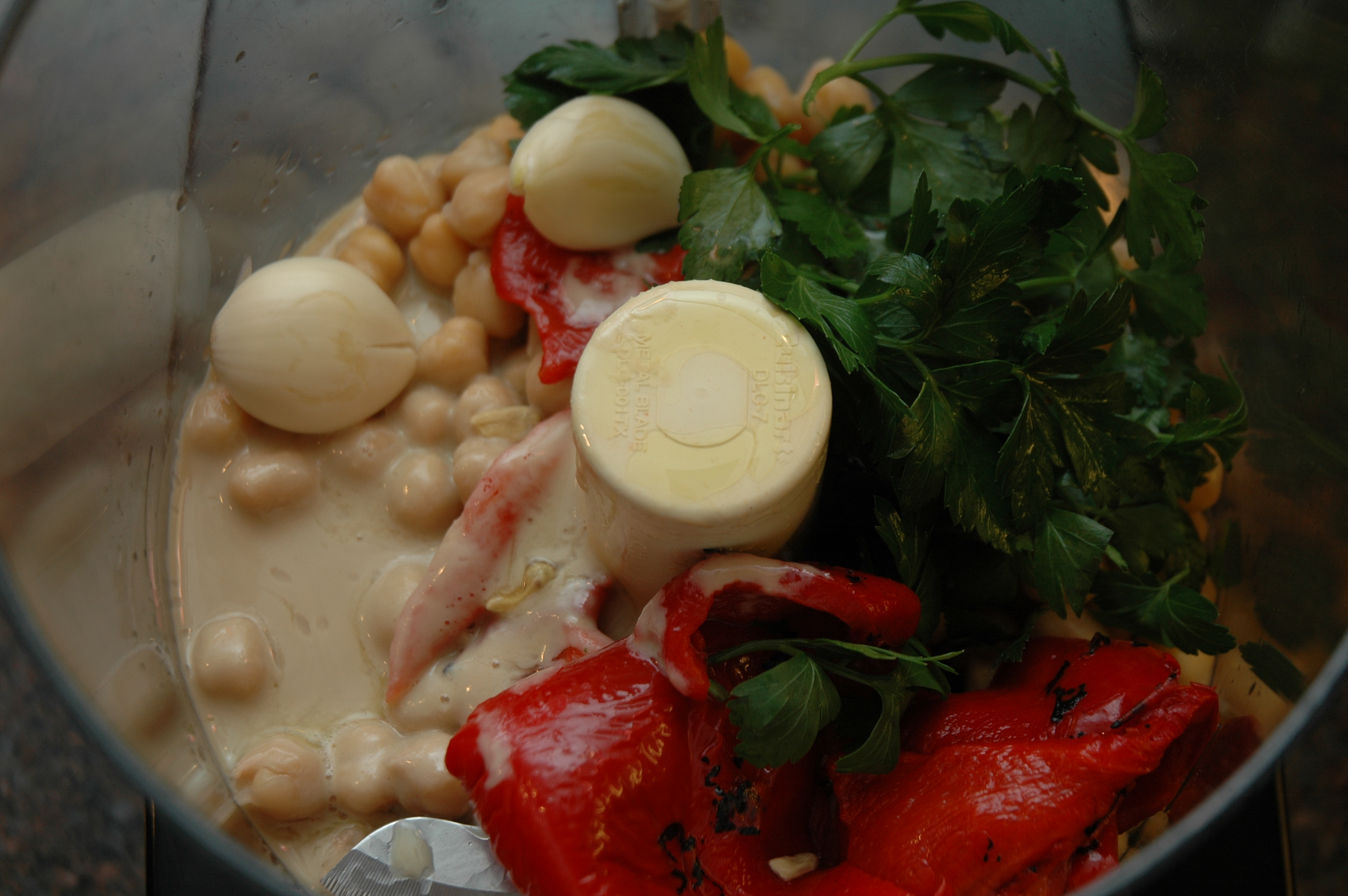 Anywho…on to the snacks. I’ve been coming up with Idol snacks for Yahoo! music blogger Lyndsey Parker and her Reality Rocks blog every week this season. Tuesday night was Mushroom & Mozzarella Crostini night, last night I was baking up some Chicken Puffs with Pesto and tonight I’m making Roasted Red Pepper Hummus.