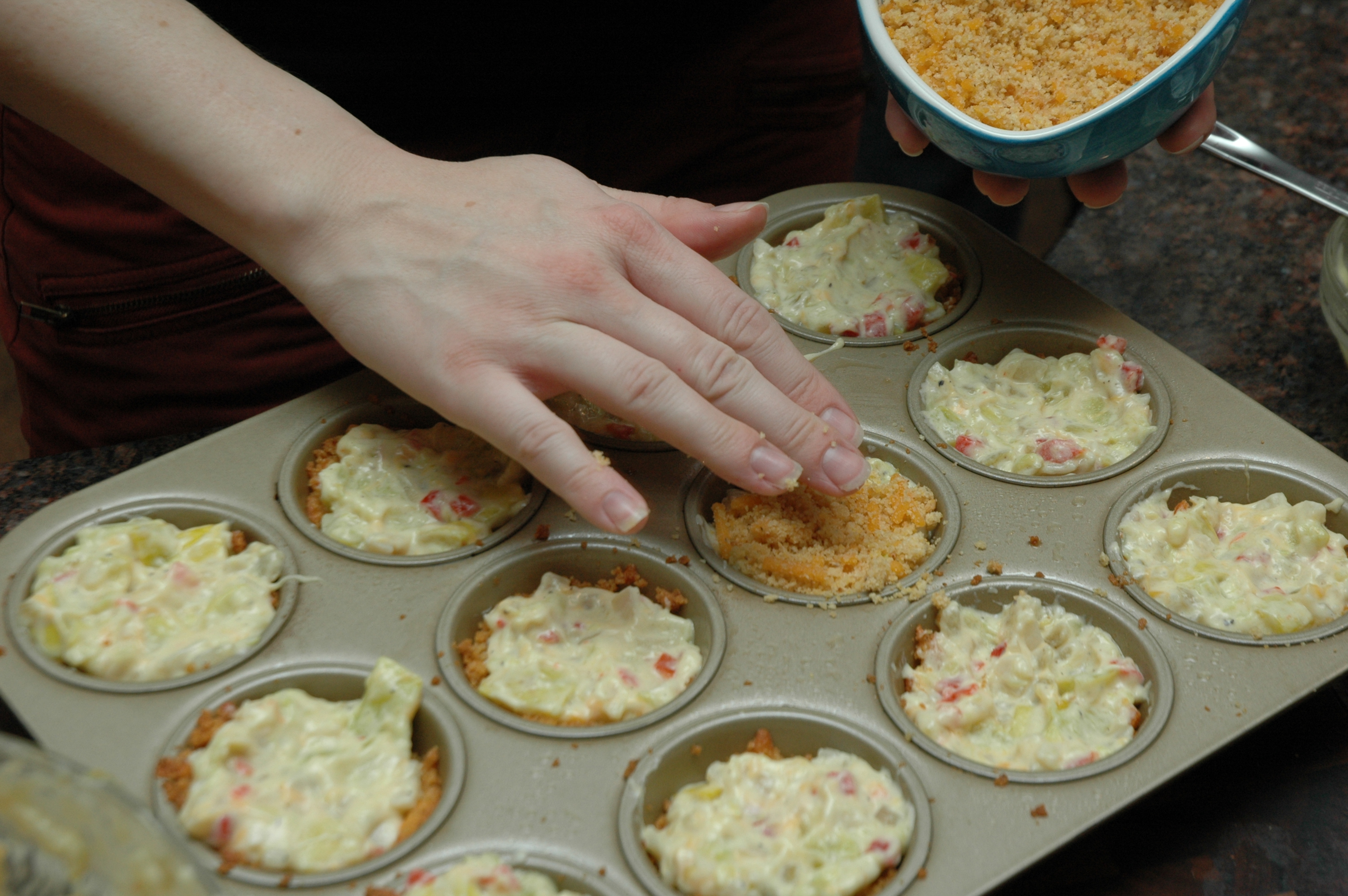 - Make sure the consistency of the cornbread stuffing mix is sticky enough to form cups.
