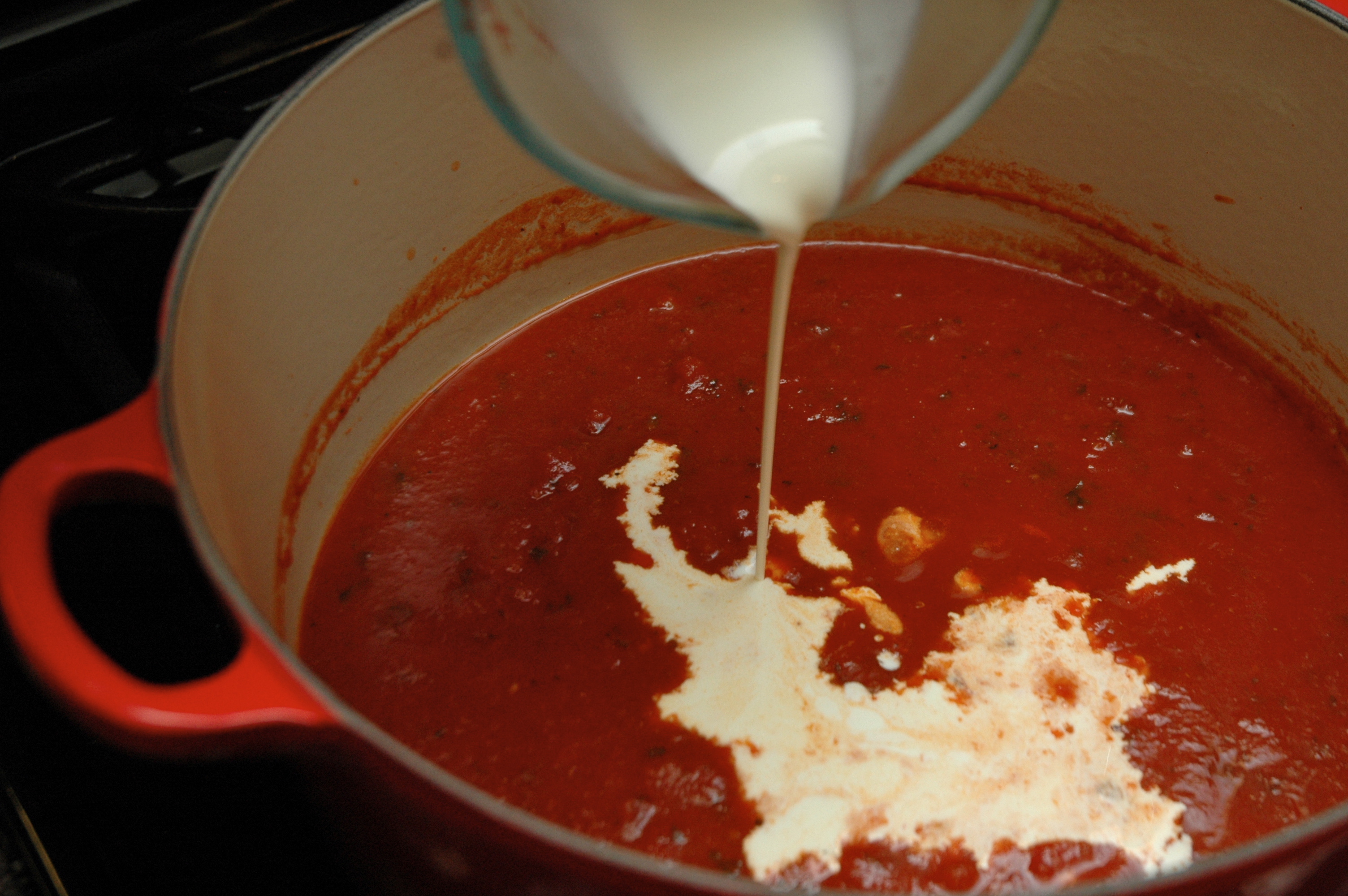Simmer for 20 minutes until slightly reduced. Add the cream.
