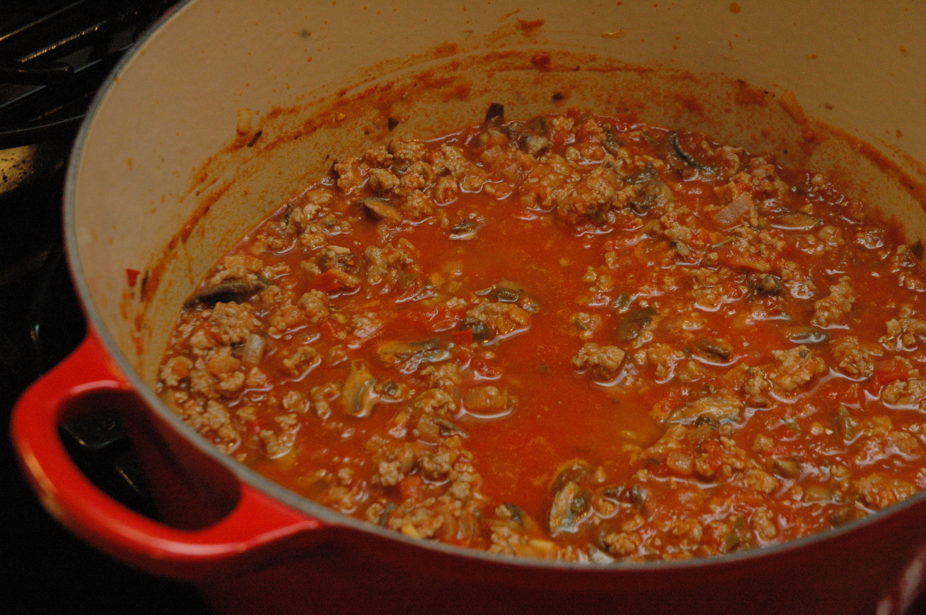 Mix in the marinara and simmer while you assemble the remaining ingredients. Salt and pepper to taste.
