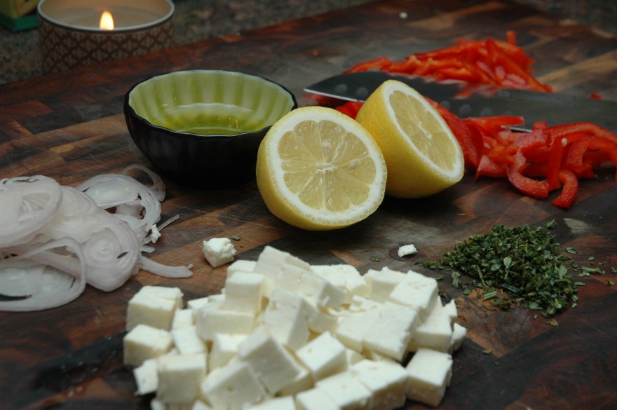 - 4 oz reduced fat feta cheese, cubed