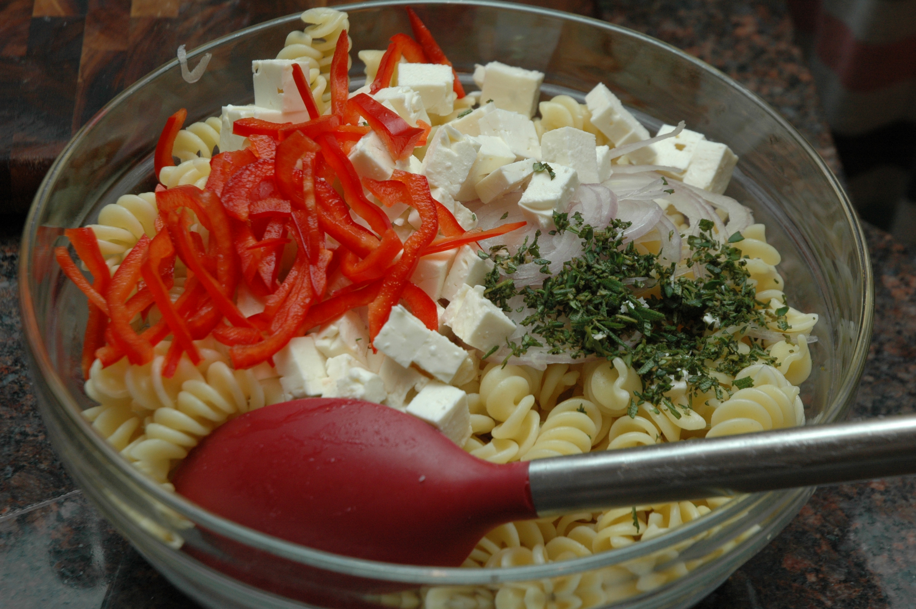- 1 pound cooked fusilli pasta, cooled
