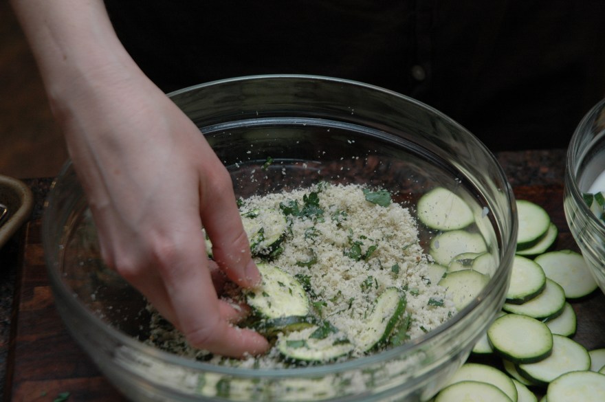 - 4 small zucchini, sliced 1/4″ thick
