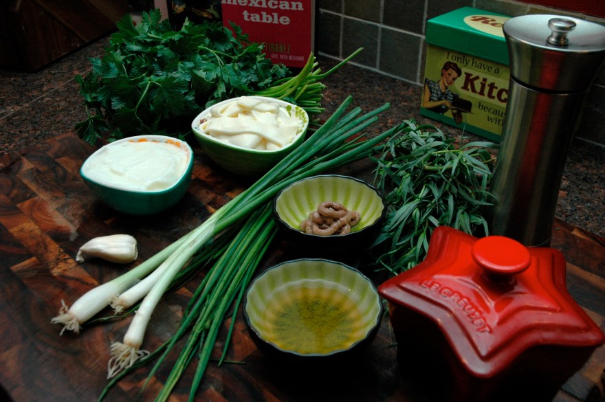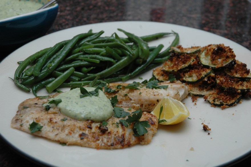 I made this as an appetizer then used some of the Green Goddess Dip on top of some yummy citrus marinated tilapia and hericot verts!! It was sooo delicious.