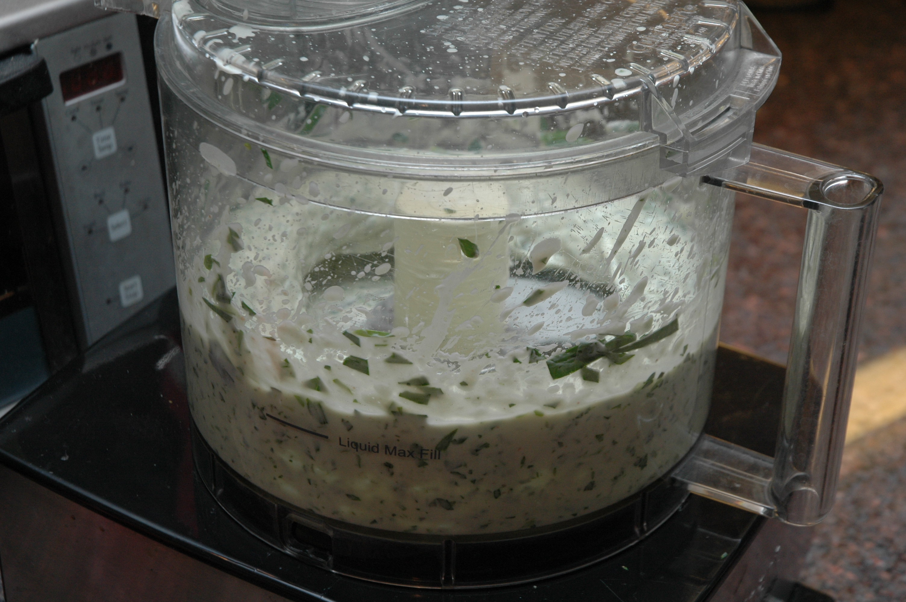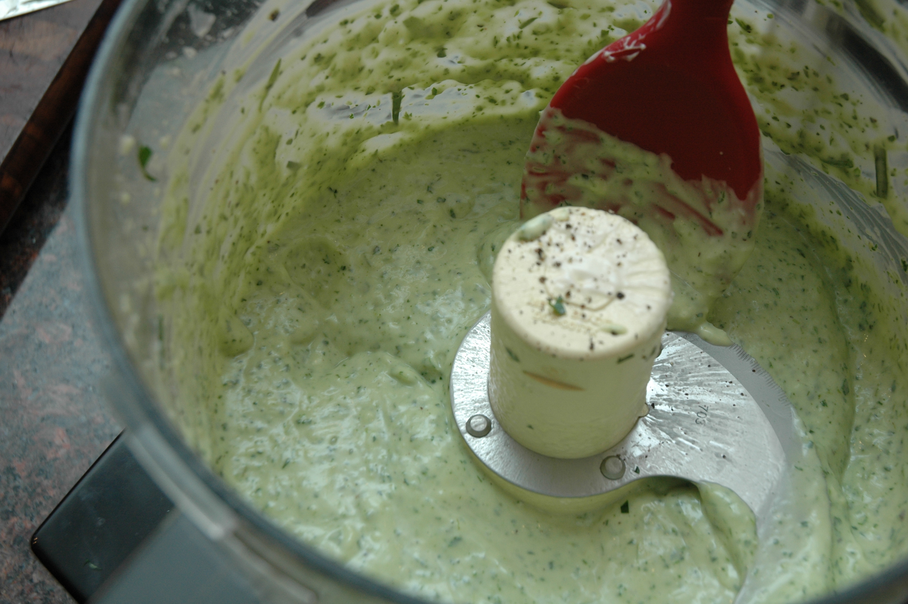 While the zucchini is baking combine all of the dip ingredients, through the salt and pepper, in a food processor or blender.