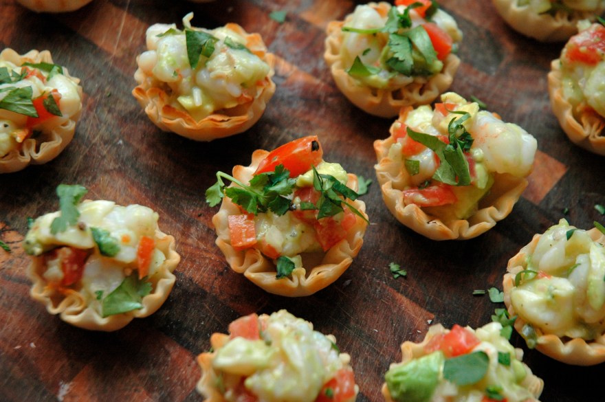 Place a spoonful of the mixture into the fillo shells and sprinkle with some cilantro.
