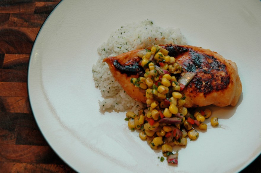 Soy Lime Marinated Chicken with Balsamic Corn Relish