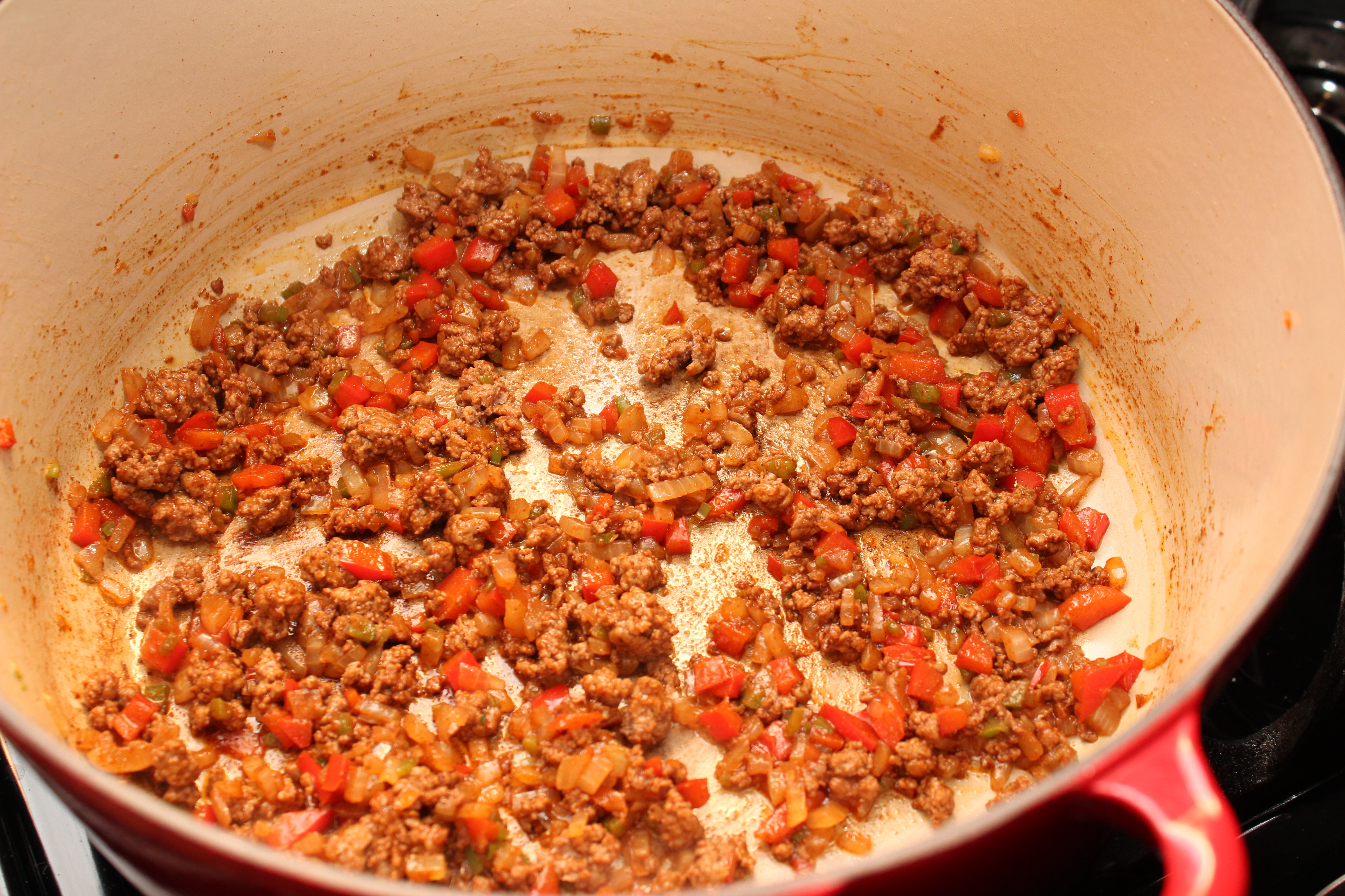 Add the sirloin, chile powder and cumin and saute until the meat is cook through.