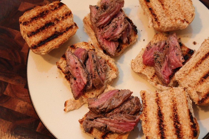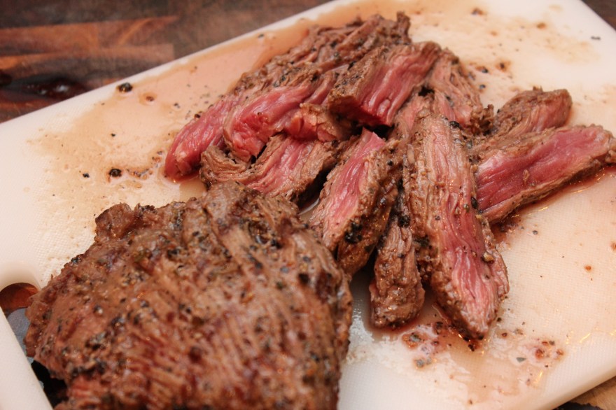 - 1 lb marinated flank steak (I used Peppercorn marinated)