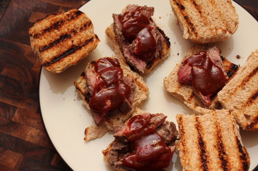 Remove from the heat and rest. While the meat is resting slice the rolls and heat on the grill for 1-2 minutes.