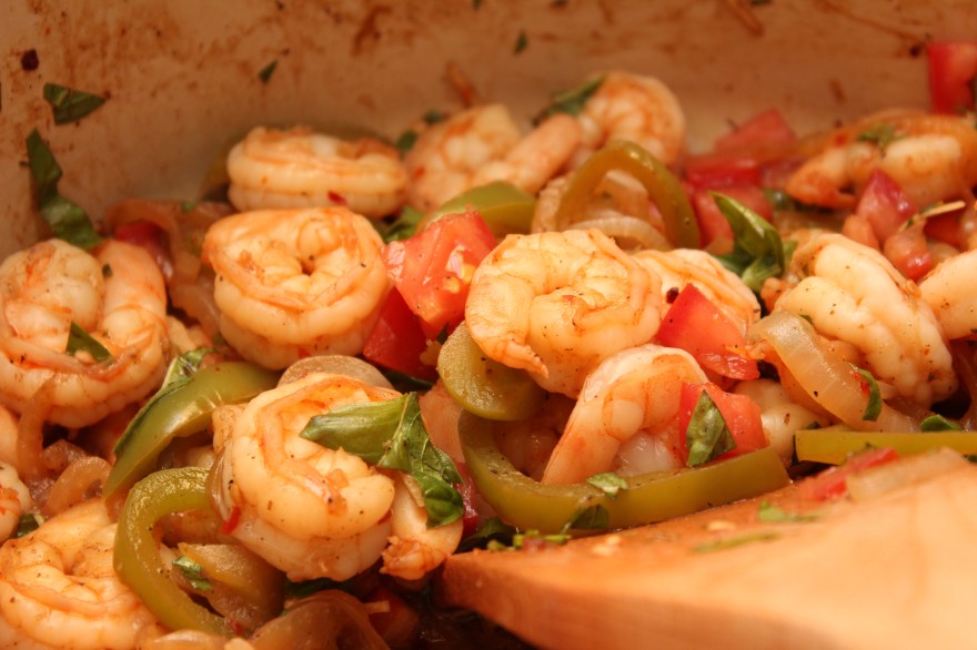 Season the shrimp with the remaining salt and pepper and drizzle with some of the fresh lemon juice. Add the shrimp to the onion mixture and cook until nice and opaque. Stir in the tomatoes and basil and remove from the heat.