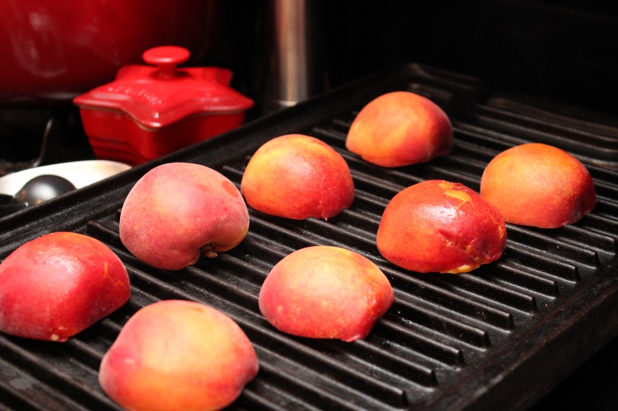 Remove the peaches from the grill.